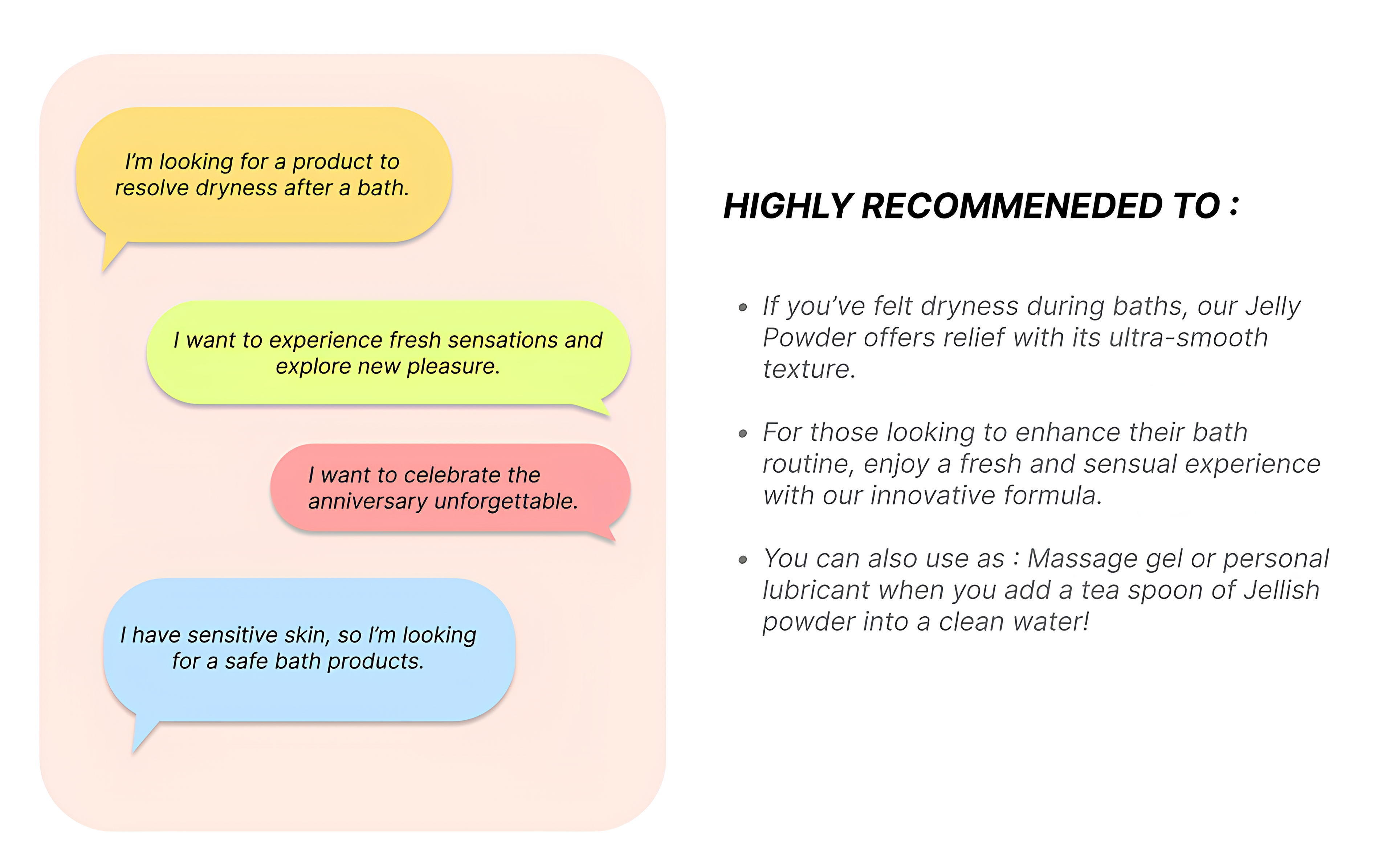 Transform your bath into a spa-like escape with Jellish Bath Powders, designed to provide the ultimate relaxation experience. Our innovative formula turns water into a soothing, jelly-like texture that hydrates and nourishes your skin while delivering a sensorial delight.